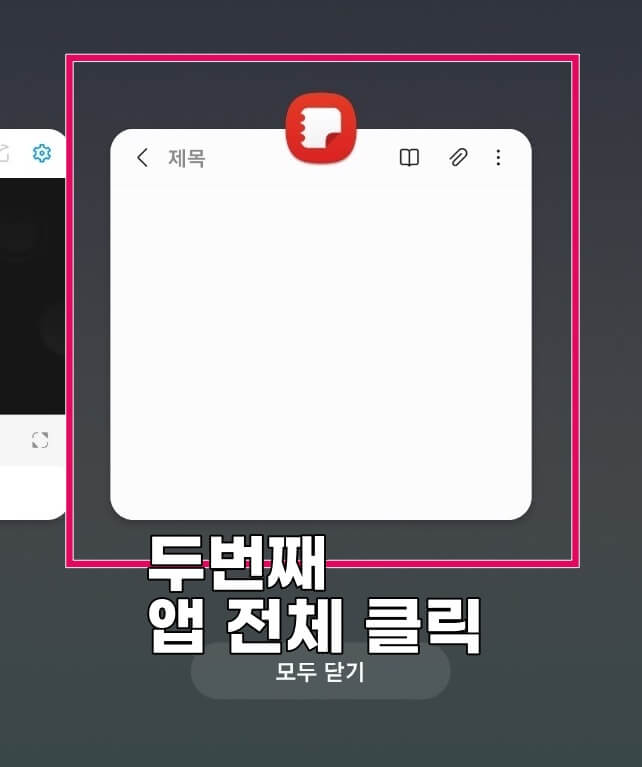 그다음 하단에 놓고 사용할 앱 전체를 클릭합니다. 상하 두 앱의 경계 부분을 움직여서 크기를 조절할 수 있고 화살표를 눌러서 상하 위치를 바꿀 수도 있습니다.