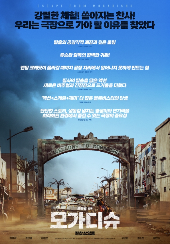 소말리아는 여행 금지국으로 영화의 실제 배경인 모가디슈에서의 촬영은 불가능해서 다른 장소를 모색할 수밖에 없었습니다. 그리고 모가디슈의 풍경을 재현하기에 적합한 모로코에서의 촬영을 결정하고 각 분야 전문가들의 노력 끝에 1990년대의 모가디슈를 완벽하게 재현하는 데에 성공했습니다. 하지만 촬영이 마무리될 무렵 시작된 코로나로 인해 상영은 늦어졌고 아직도 진행 중인 팬데믹 상황 속에서도 360만 관객을 동원하여 예상했던 것보다 흥행에 성공합니다.