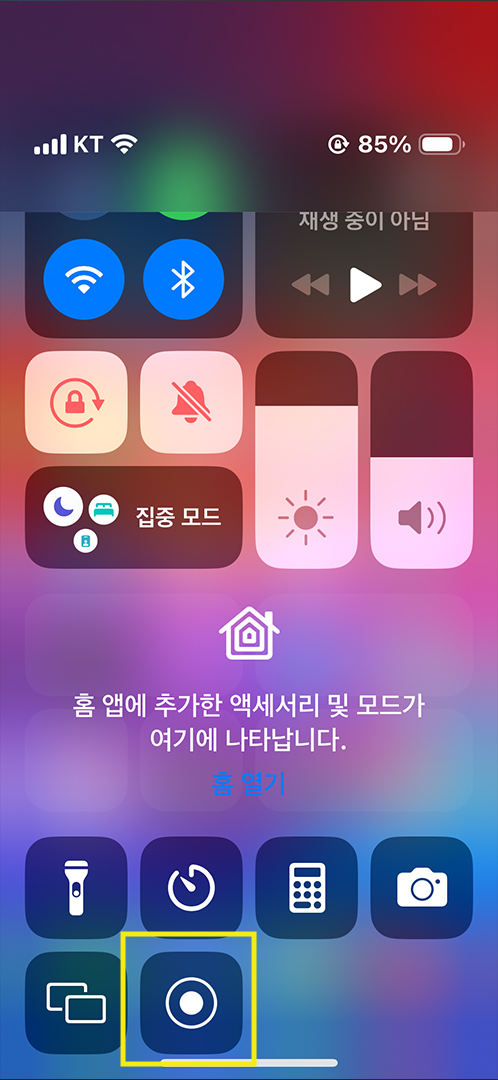 제어센터에 동그란 모양의 화면 녹화 버튼이 없다면 추가 해주시면 됩니다.