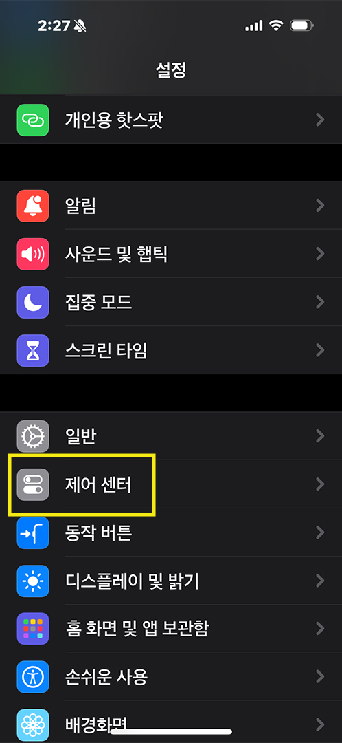아이폰 설정을 열어 제어센터를 클릭합니다.