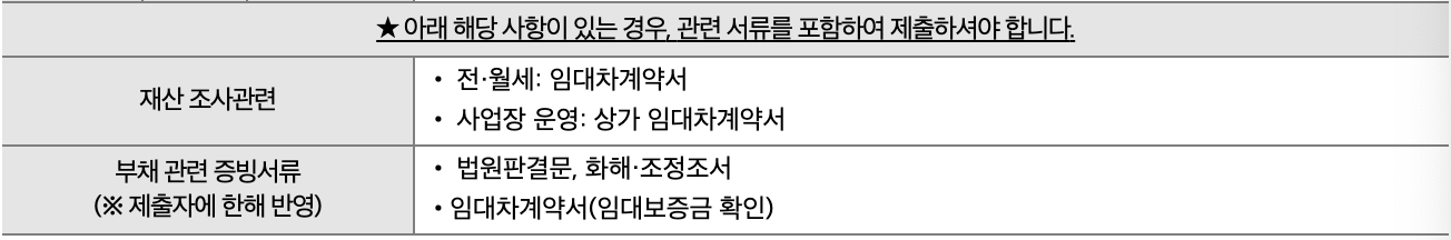 3. 재산 조사 관련, 부채 관련 증빙서류가 필요하다면 포함해서 제출해야 함