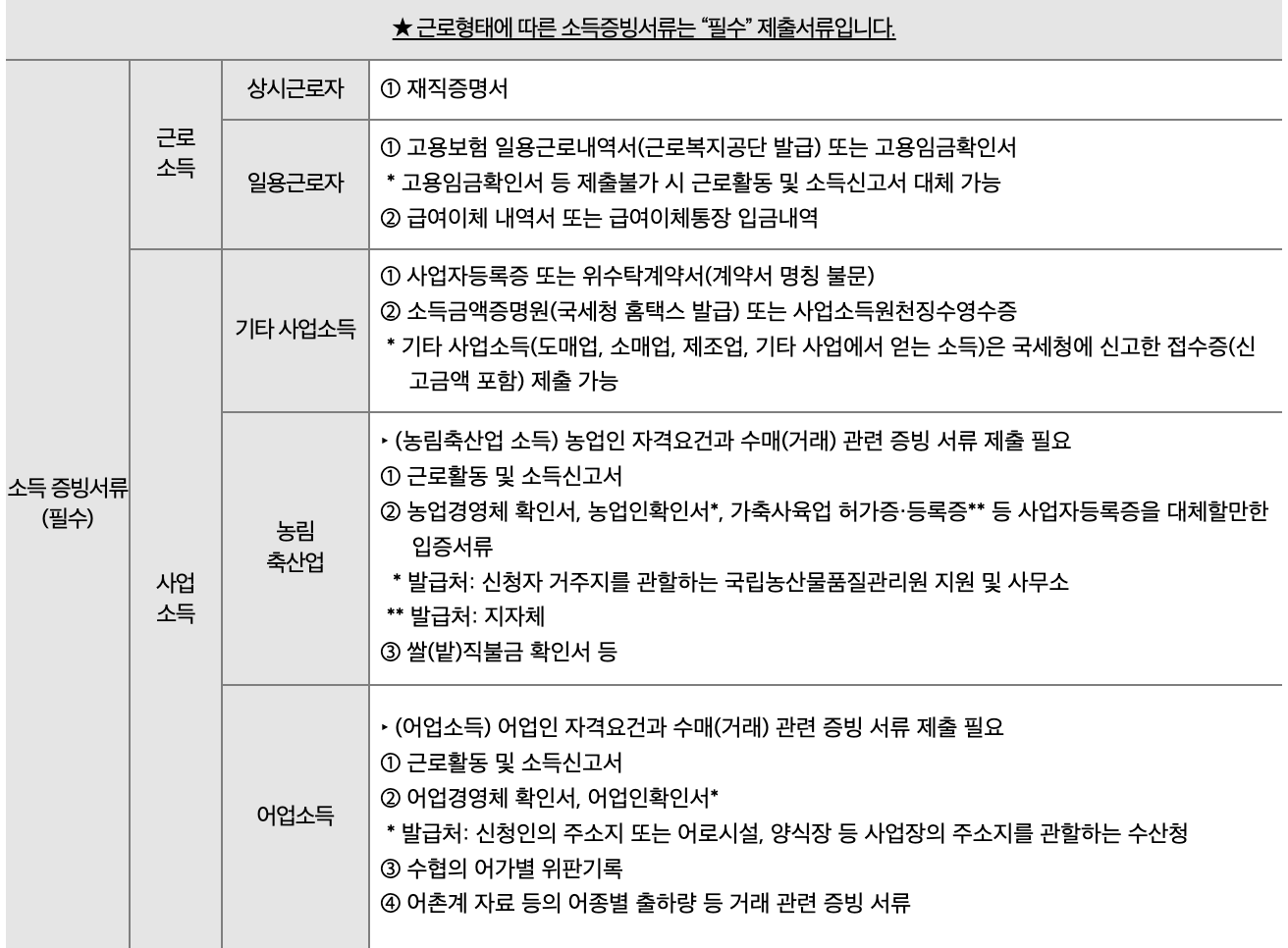 2. 근로형태에 따른 소득증빙서류 - 필수