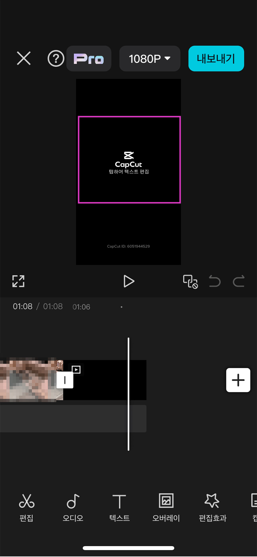 캡컷은 기본적으로 마지막에 아래 사진처럼 엔딩로고가 나타나서 삭제하지 않으면 영상에 그대로 나타납니다.