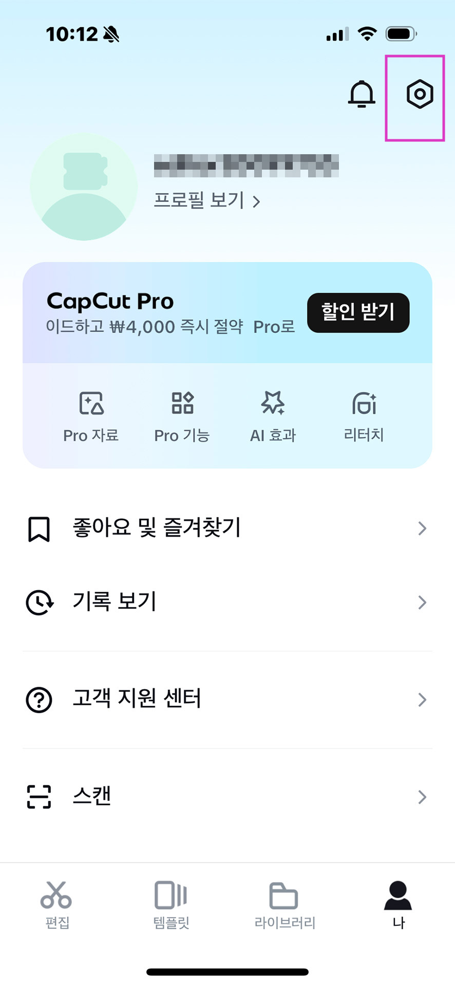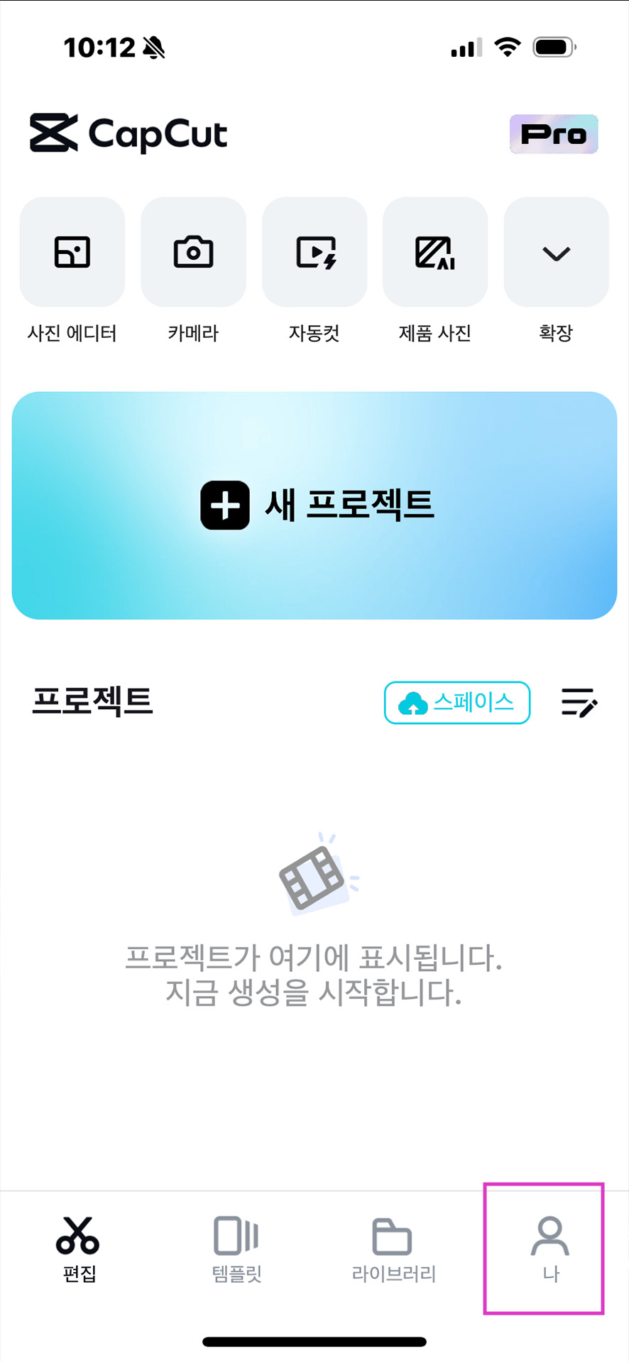 기본 엔딩 로고를 삭제하기 위해 먼저 오른쪽 아래에 있는 '나'를 클릭합니다.